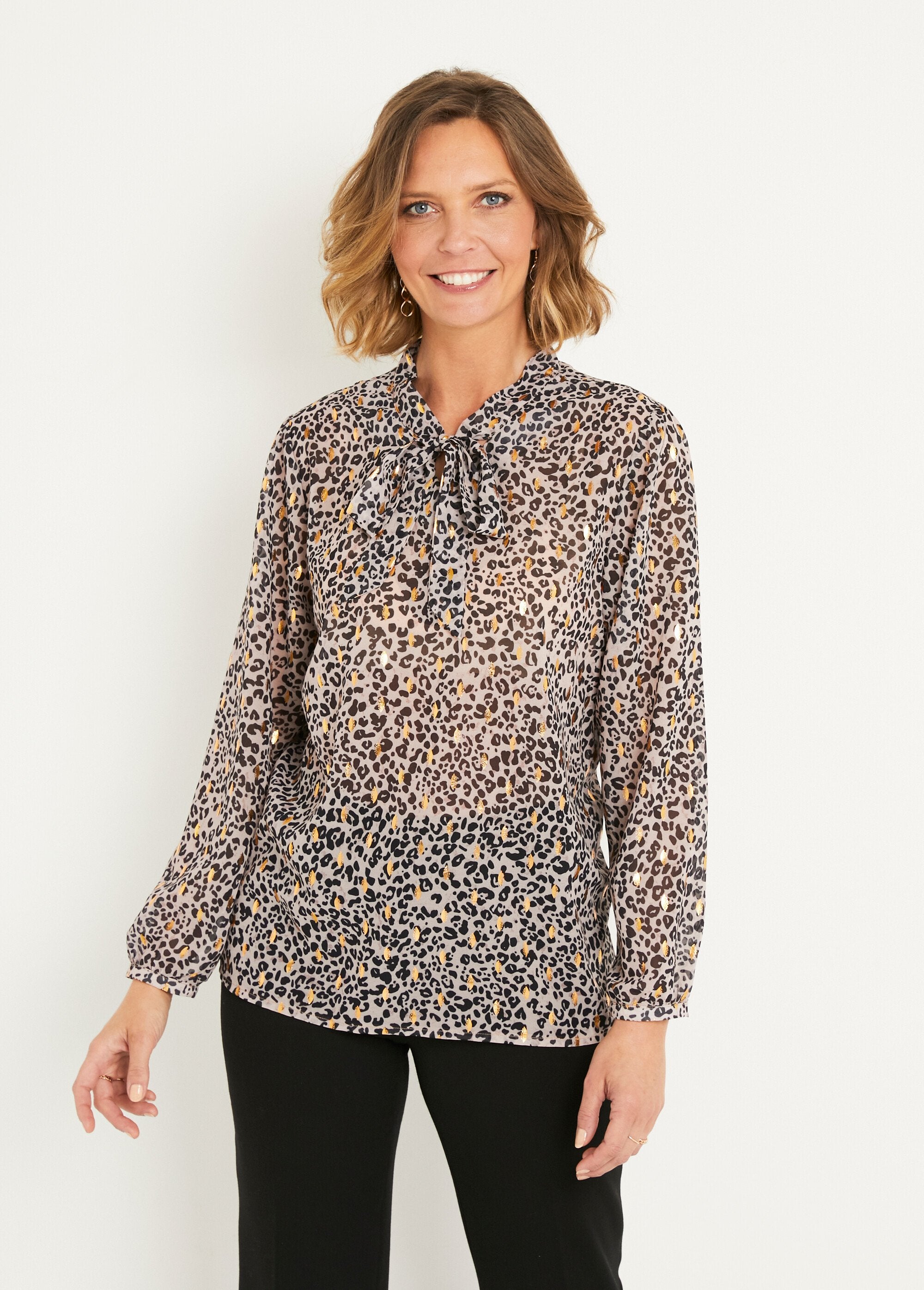 Shiny_leopard_print_voile_flared_tunic_Black_and_beige_FA1_slim Shiny_leopard_print_voile_flared_tunic_Black_and_beige_DO1_slim