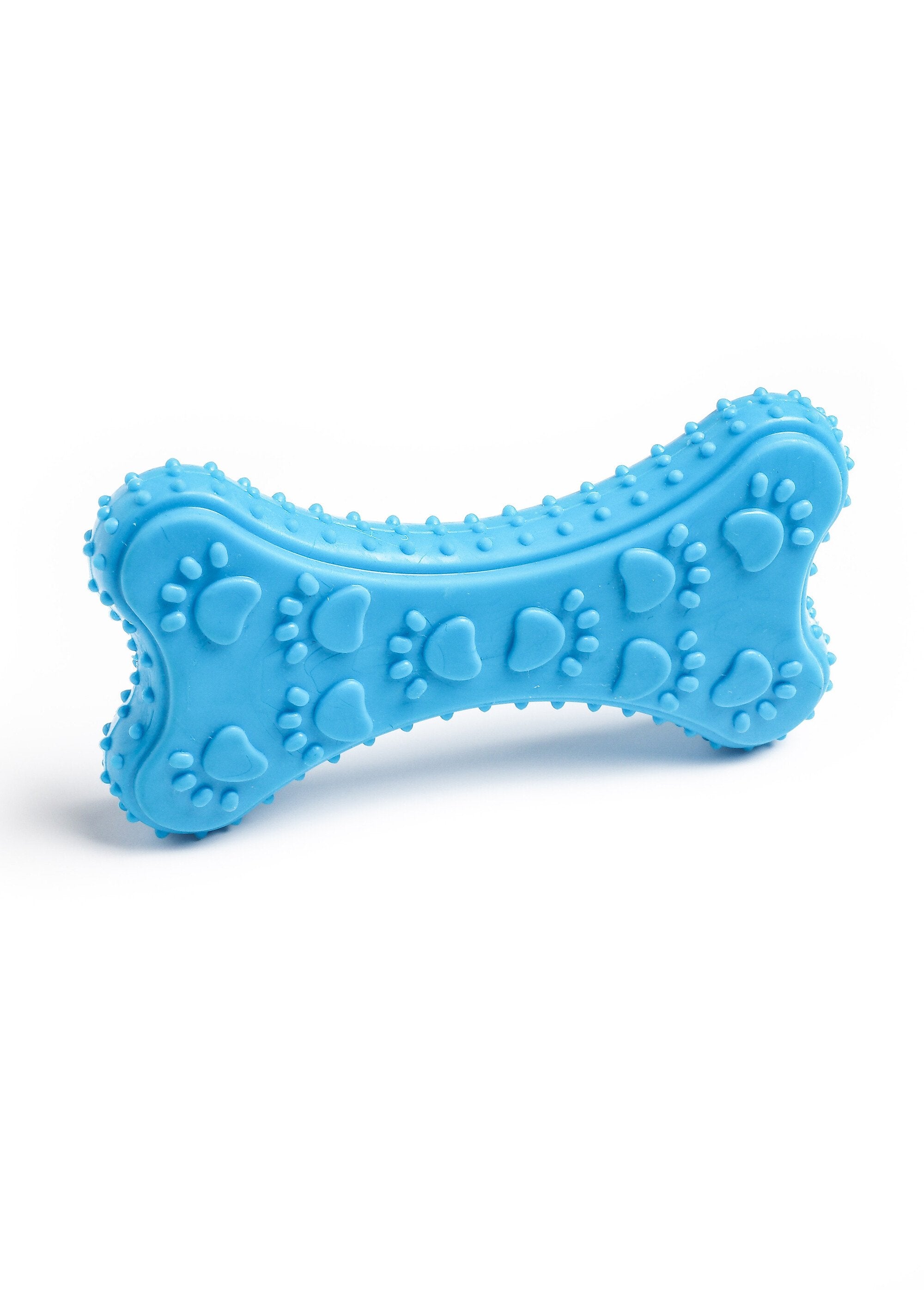 A rubber bone with a paw relief perfect for attracting your companion's attention. Designed to help keep your dog's teeth healthy and promote dental hygiene, it is ideal for occupying, biting, chewing and exercising. This toy offers your dog hours of distraction, while contributing to his physical and mental well-being. Thanks to its raised texture and attractive color, this bone will quickly become your dog's favorite toy, offering him pleasure and health every day.