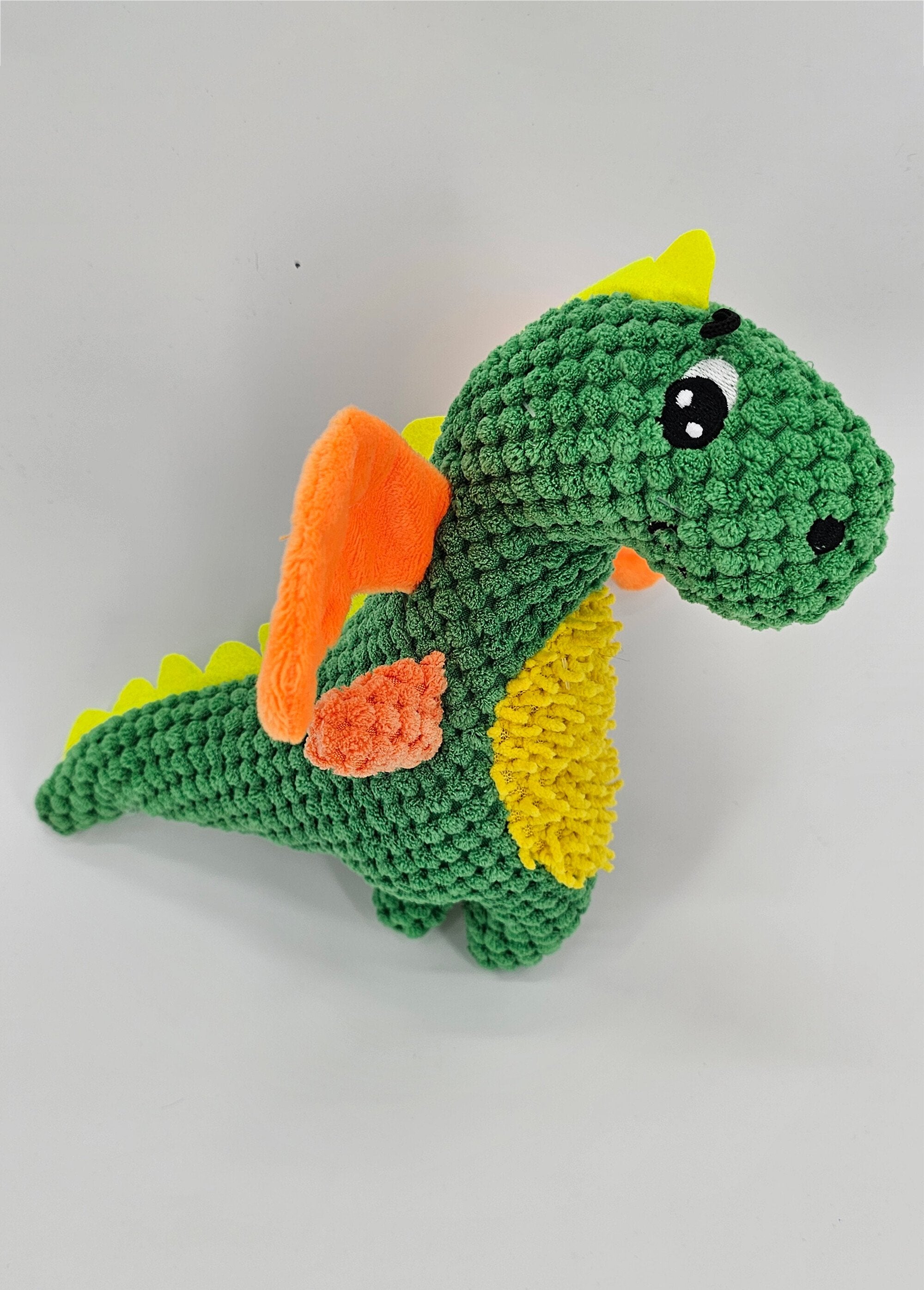 This brightly colored dragon plush toy is perfect for satisfying your dog's need to chew without damaging their teeth. Designed to fit your pet's mouth perfectly, it absorbs your scent, providing comfort and security when you're away. Featuring a sound function, it sparks your pet's interest, keeping them engaged and entertained.