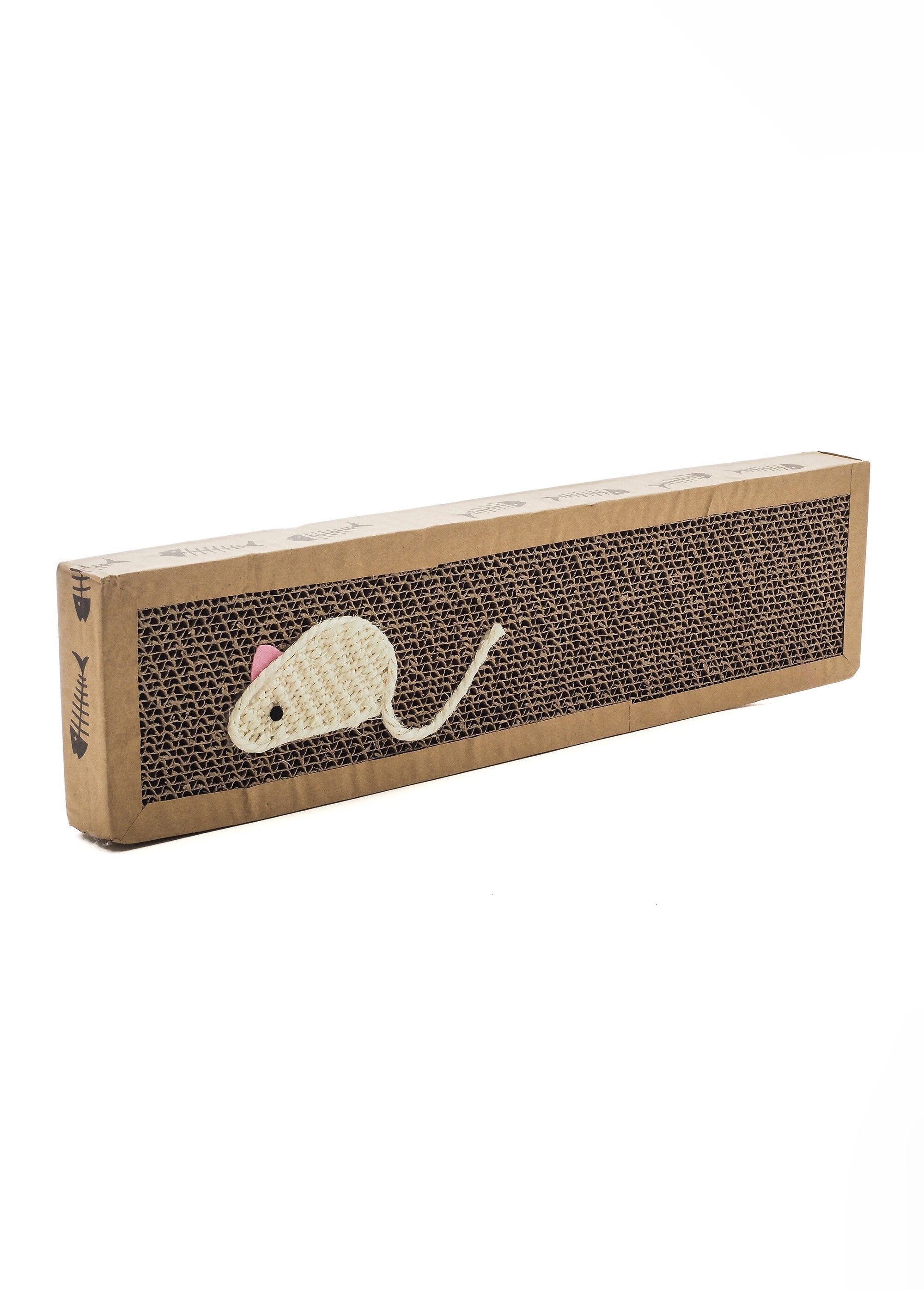 Choose this medium-sized kraft cardboard scratching post, ideal for nail care and stretching. Accompanied by a sisal mouse, it provides the perfect play and care area for your feline. Practical and easy to place wherever you like, this scratching post is suitable for all interiors. The catnip integrated into the box ensures rapid adoption and irresistible appeal for your companion. An essential accessory for your cat's well-being and entertainment.